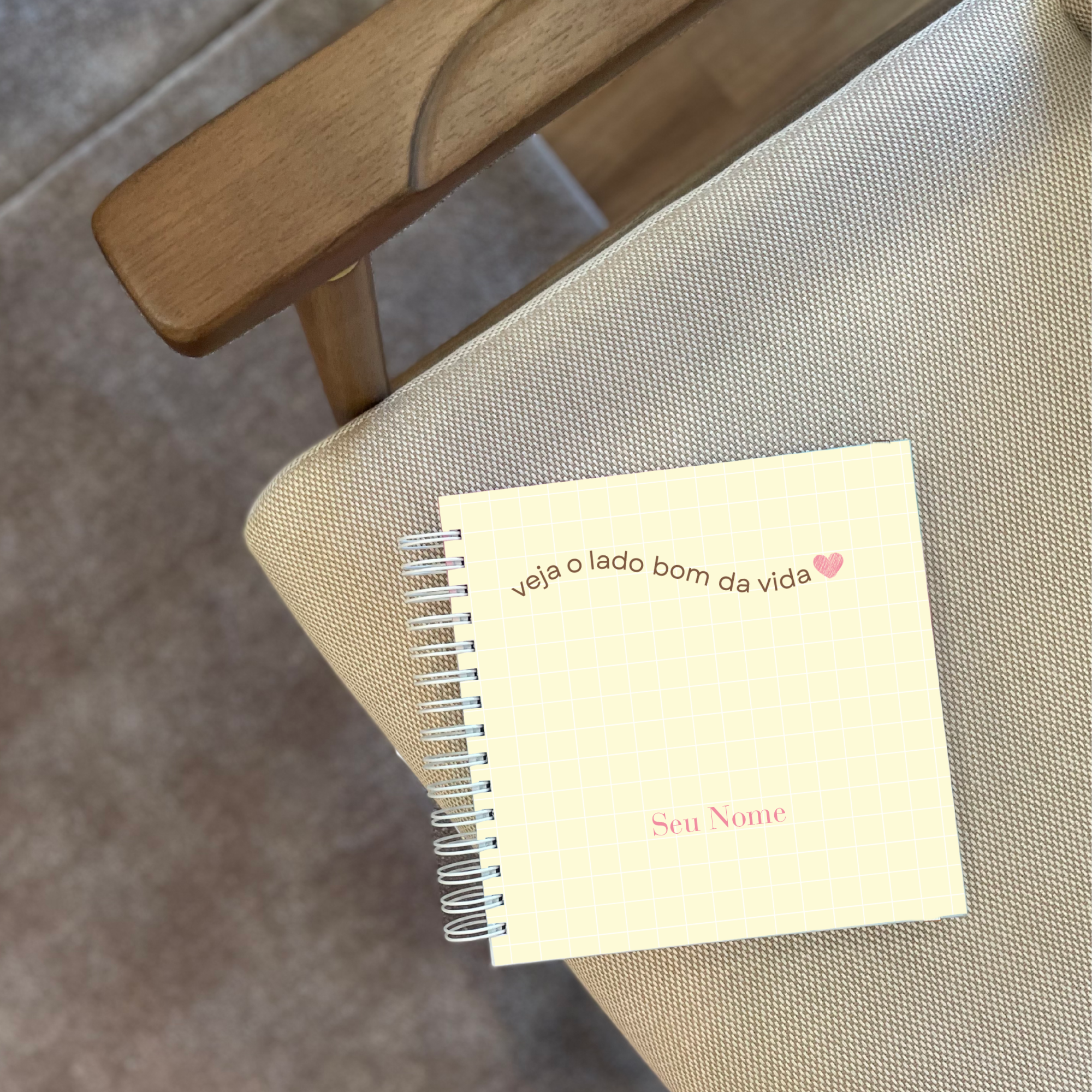A capa é totalmente personalizada com o seu nome, confeccionada em papel 120g com laminação fosca, que garante proteção, toque suave e um acabamento impecável.