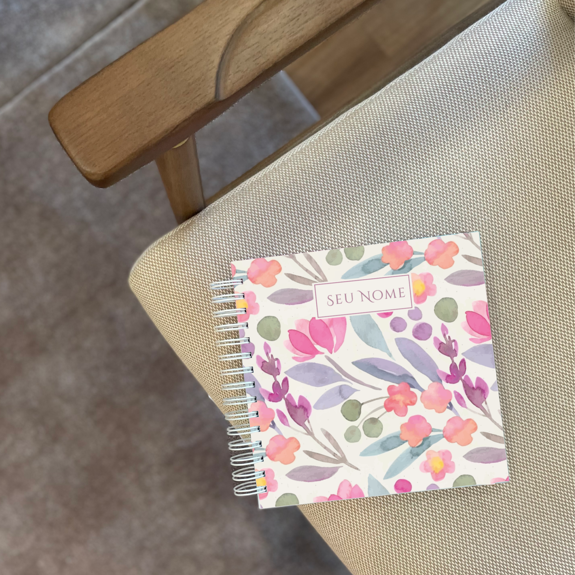 A capa é totalmente personalizada com o seu nome, confeccionada em papel 120g com laminação fosca, que garante proteção, toque suave e um acabamento impecável.